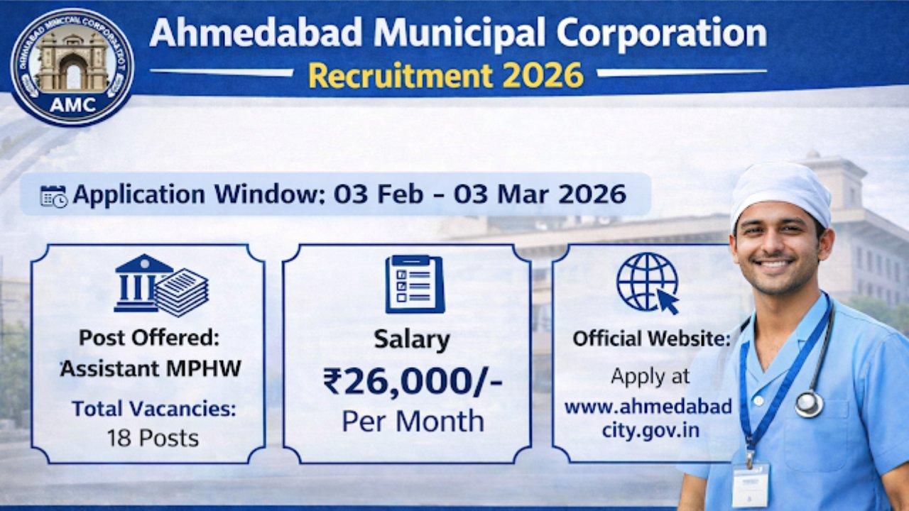 Ahmedabad Municipal Corporation Recruitment 2026: (AMC) Has Released An Official Notification For The Recruitment Of 18 Vacancy, Special Recruitment Drive Exclusively For Divyangjan (Persons With Disabilities), Post Name. Assistant Multi-Purpose Health Worker, Advertisement No.: 28/2025-26, Last Date To Submit Application Form 03/03/2026, Recruitment Details, Educational Qualification, Age Limit, Salary Structure, Selection Process, Application Steps, And Direct Links To … Read more