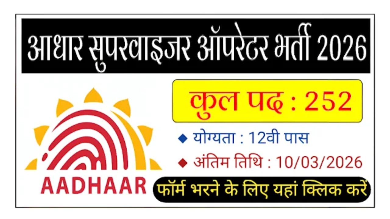 Aadhaar Operator Supervisor Recruitment 2026: CSC e-Governance Services Indian (CSC e-Governance Services Indian), Has Released An Official Notification For The Recruitment Of 252 Vacancy, Post Name. Aadhaar Operator Supervisor, Candidates With 12TH, ITI, Diploma Can Apply Online, The lst Date To Submit The Application Form 10/03/2026, Recruitment Details, Educational Qualification, Age Limit, Salary Structure, Selection Process, Application Steps, And Direct Links To The Official Notification And Online Application Form. Official Website @www.csc.gov.in.
