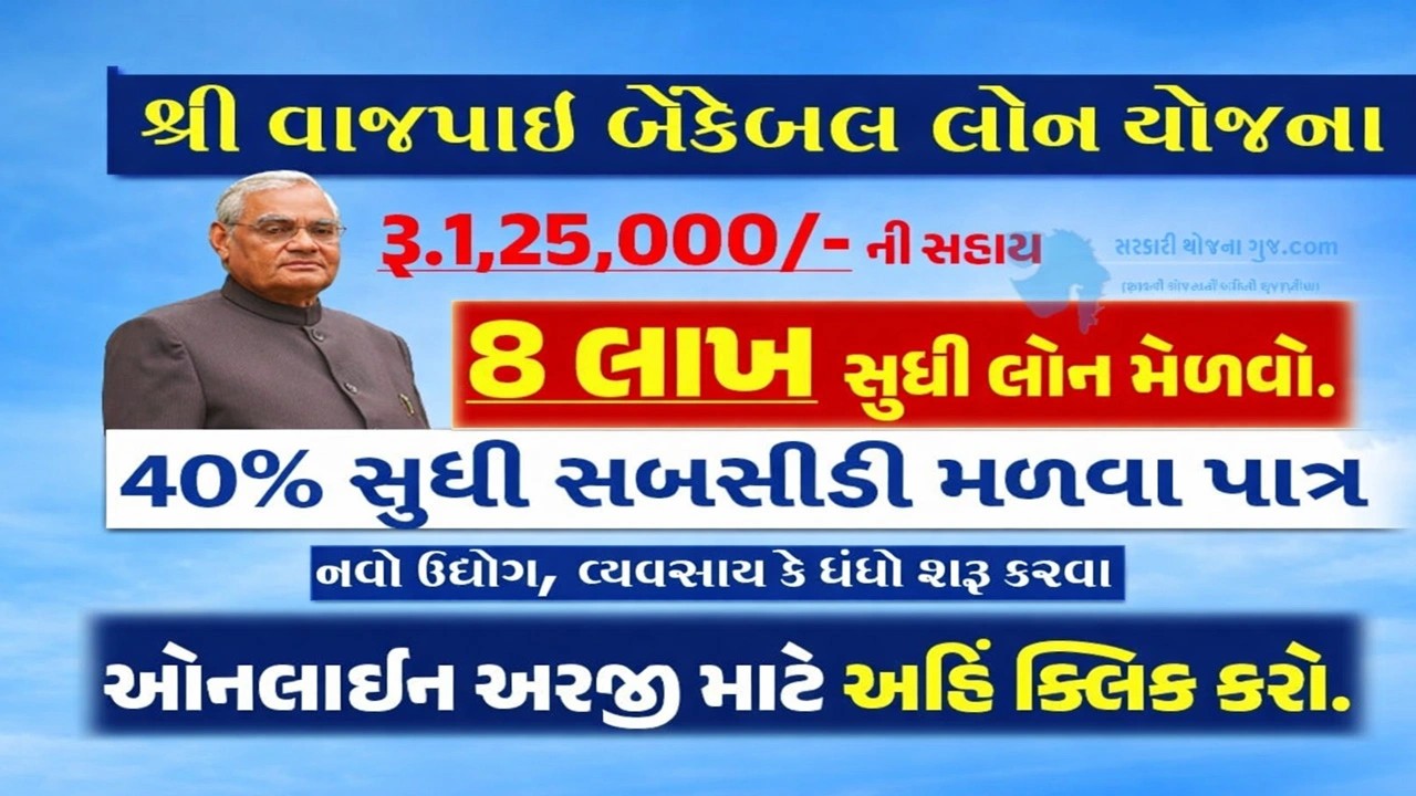 Shri Vajpayee Bankable Yojana 2025 is an important self-employment scheme of the Gujarat Government, aimed at encouraging entrepreneurship and reducing unemployment in the state. The scheme is named after former Prime Minister Shri Atal Bihari Vajpayee, who strongly supported self-reliance and employment generation.